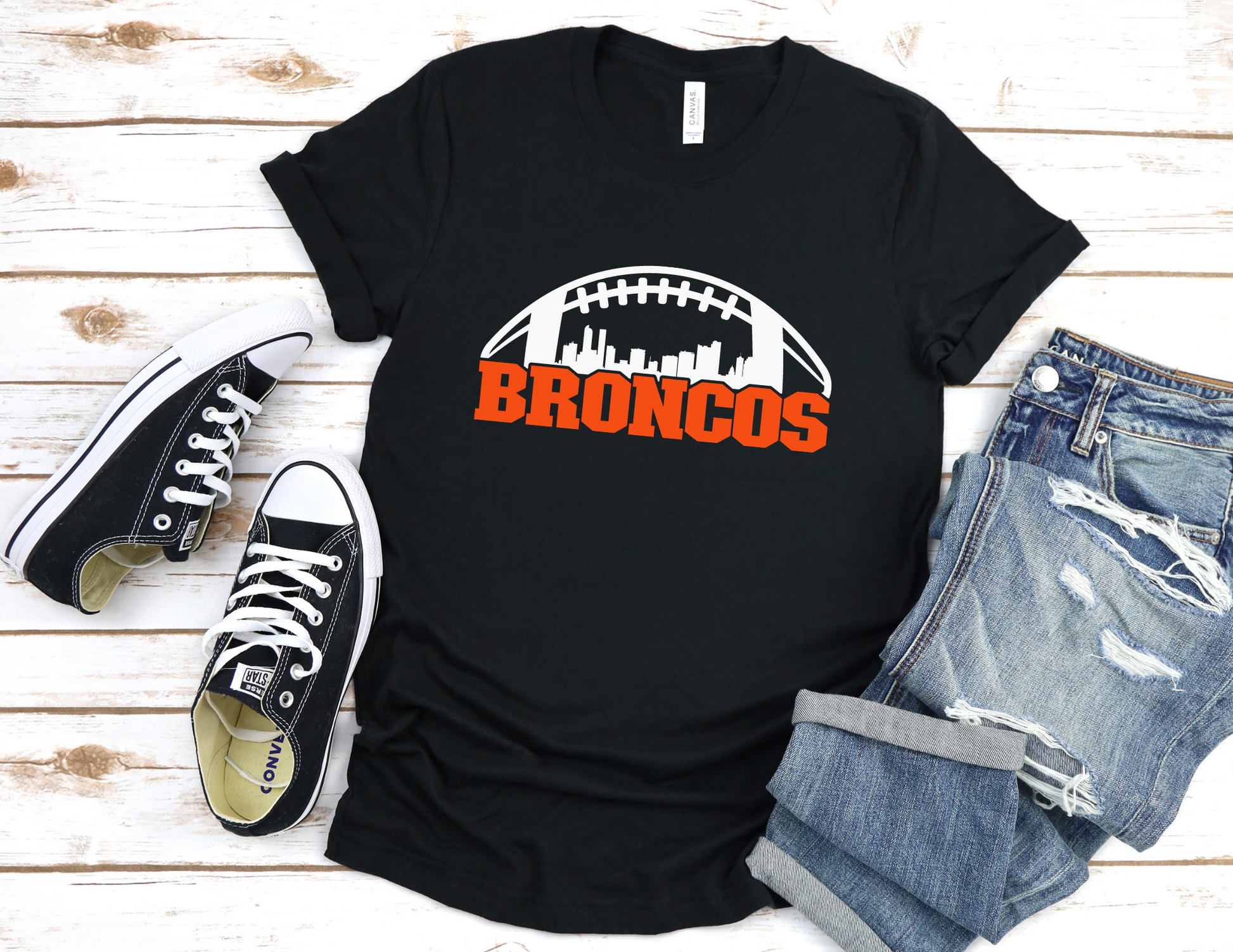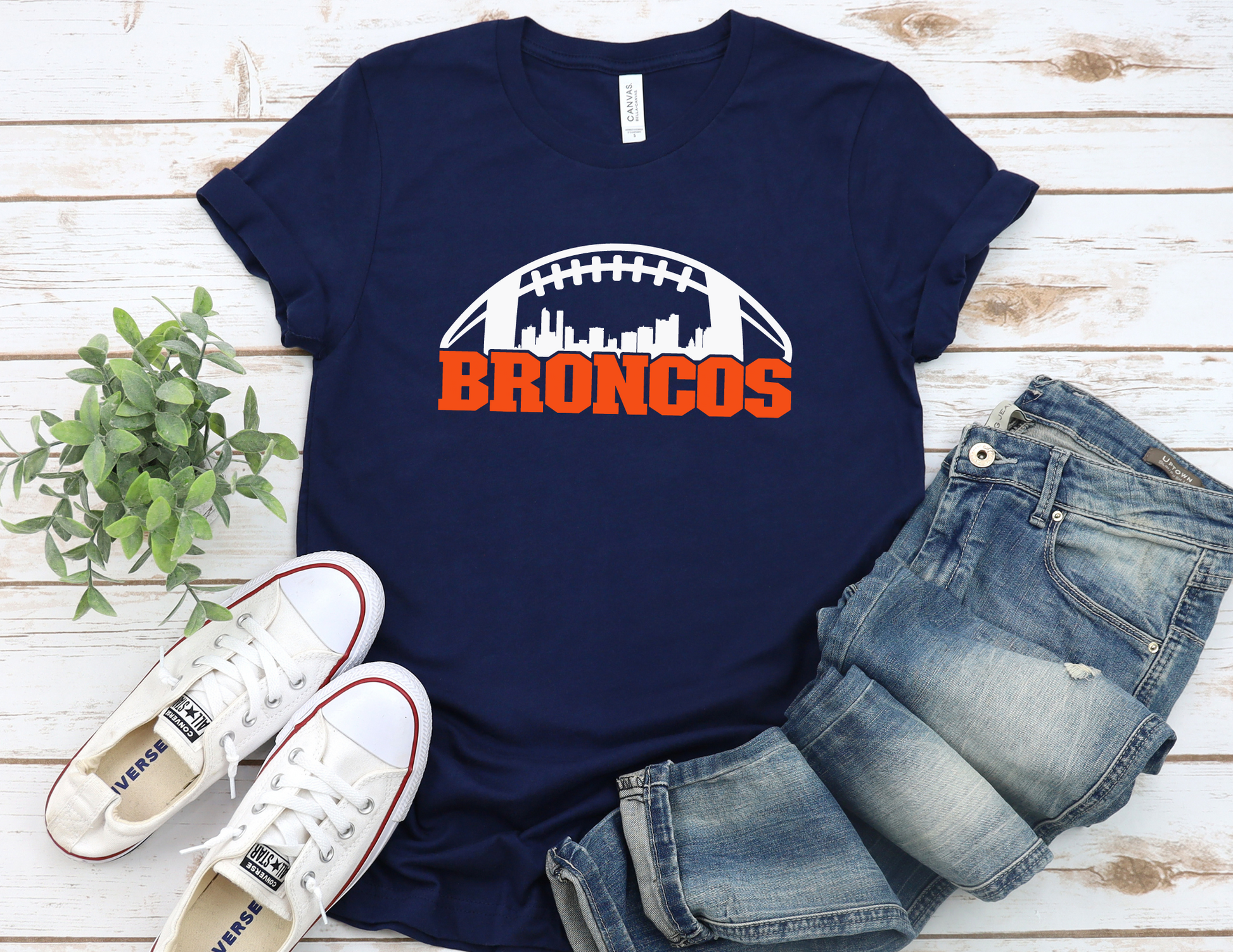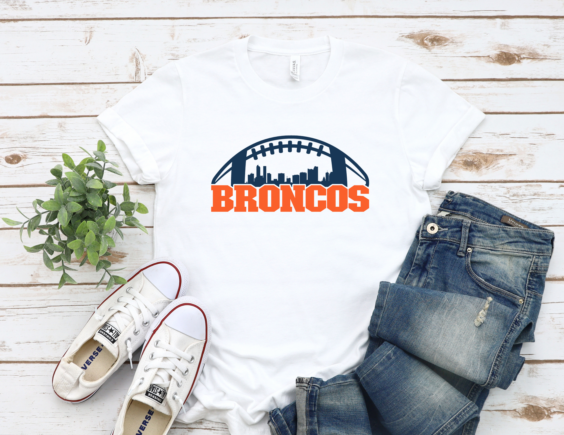 These shirts are not only fashionable but also comfortable made from soft and breathable materials. They come in a variety of sizes, from small to 3XL, to fit women and men of all body types. Whether it's for a game, Sunday Football, or just a casual day out, this Broncos Skyline T-Shirt is a perfect addition to any wardrobe or gift.