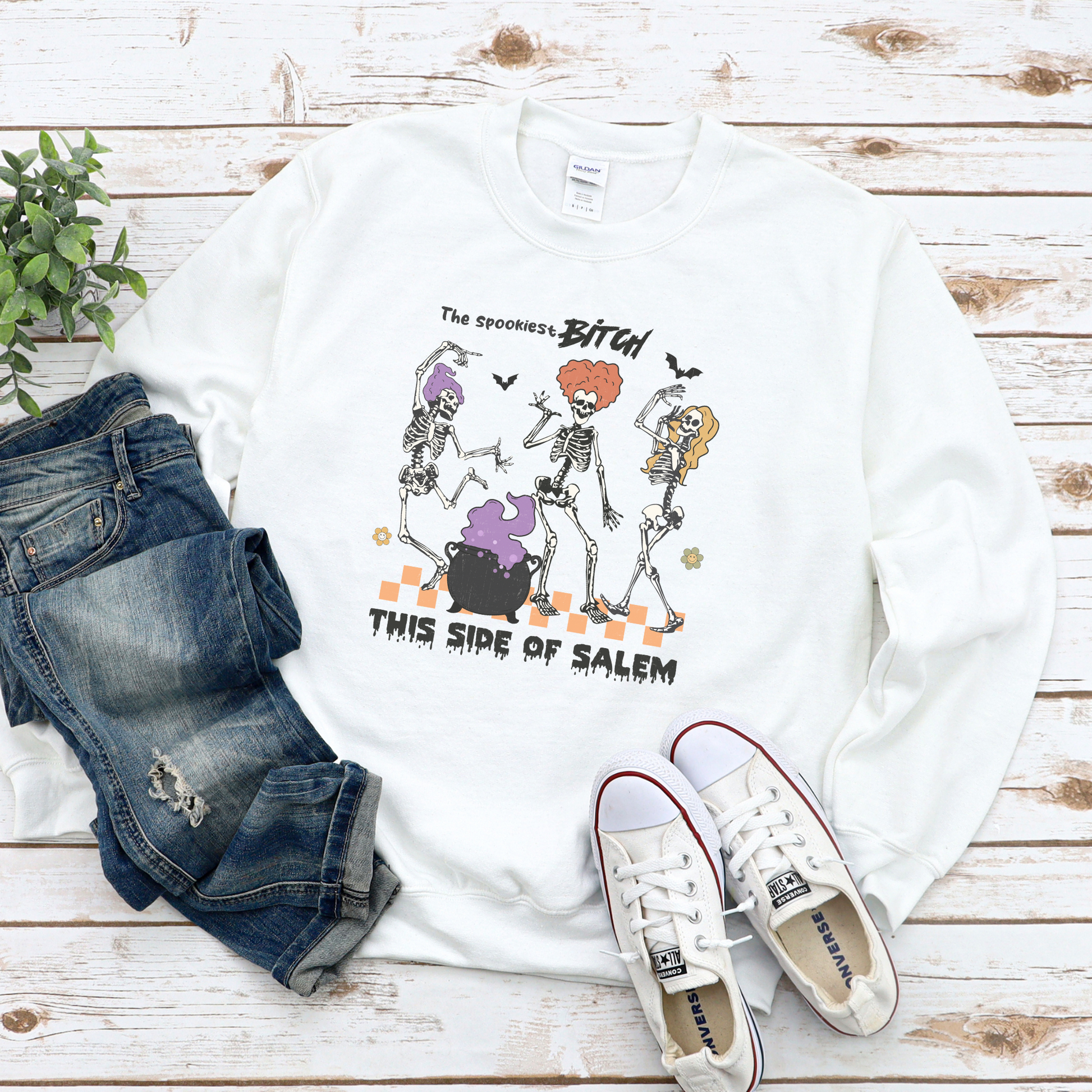 This Hocus Pocus inspired Spookiest Bitch of This Side of Salem Crewneck Sweater is super soft and cozy and comes in sizes Small - 3XL.